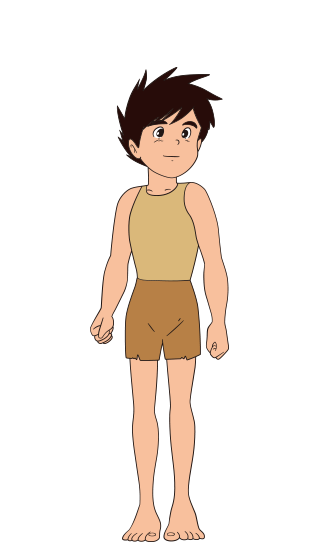 素直、楽天を絵にしたような少年。海に囲まれた島で育ったため、力強く鋭敏な運動能力を持っています。特に素潜りの長さと深さや足の指の強さは驚異的です。手製のもりを愛用しています。仲間を探し、ラナを救い出すために、のこされ島を出発します。11歳。